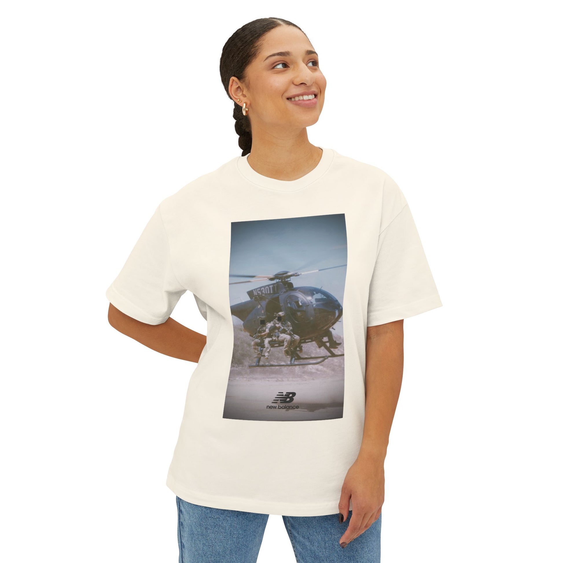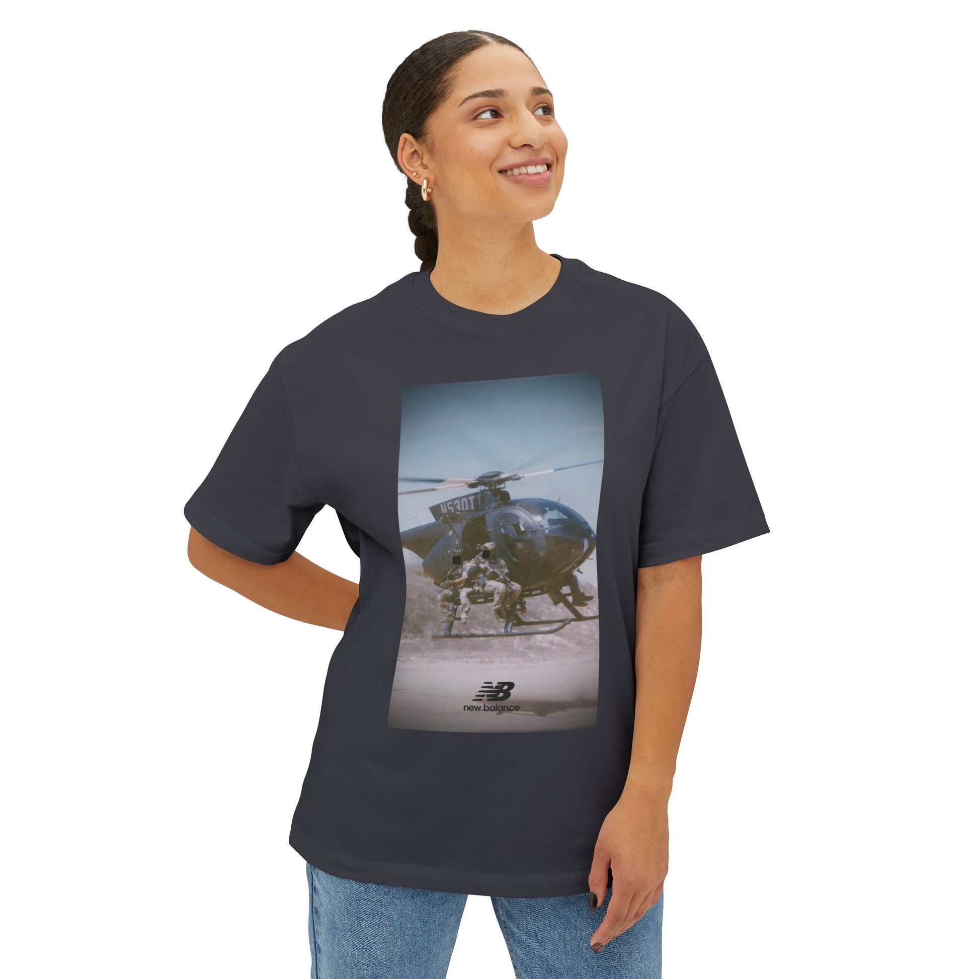 This oversized boxy tee brings a laid-back street edge to everyday wear. The relaxed, dropped-shoulder silhouette drapes easily over the body, creating a casual, lived-in look that works layered or solo. The front features a moody, cinematic graphic with subtle silhouettes and a bold logo block, giving the shirt an urban, dusk-time vibe—like late-night runs, city skate sessions, or coffee-fueled creative shifts. Medium-weight cotton gives it structure without feeling stiff; the tear-away label and durable double-needle stitching mean it stands up to repeated wear and washes. Wear it with tapered joggers and high-tops or throw it over a long-sleeve for a chilled, layered outfit that reads intentional and comfortable.